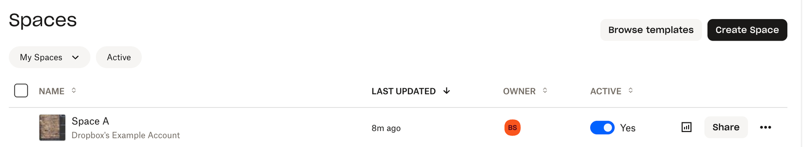 - Klicken Sie auf einen vorhandenen Dropbox Space oder erstellen Sie einen neuen Dropbox Space.