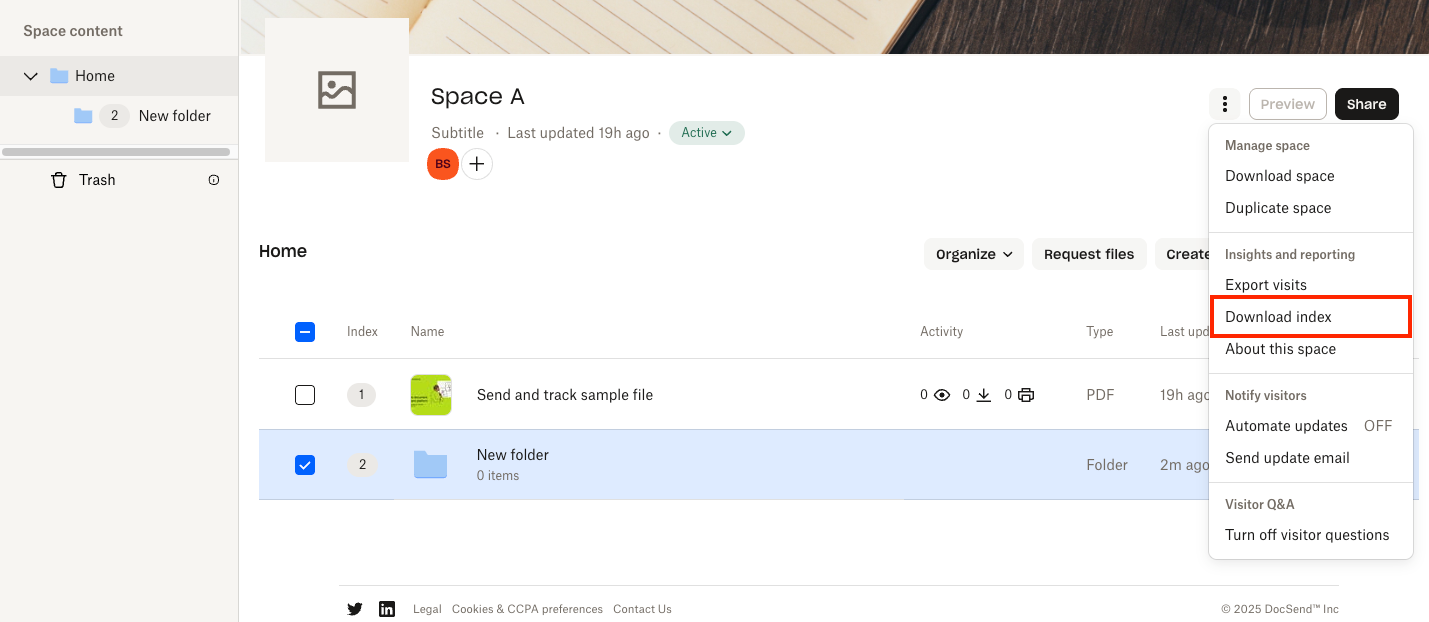 - Melden Sie sich bei Ihrem DocSend-Konto an.