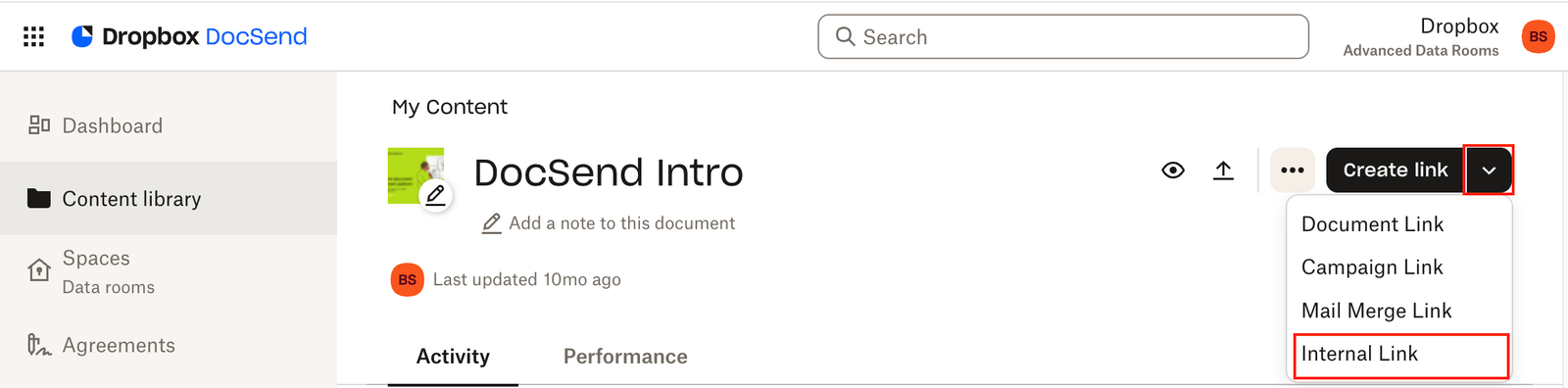 Internal links let you share content within your organization while maintaining the same insights you’d expect when sharing externally. Using internal links also separates external visitor data from internal users.