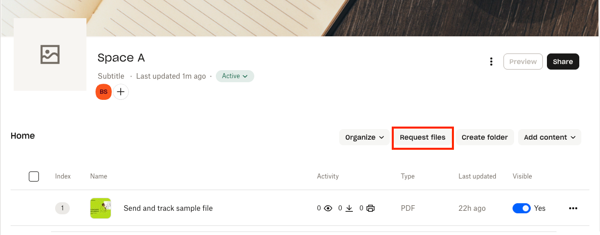 스페이스에서 파일 요청을 설정하면 방문자가 스페이스에 파일을 직접 업로드할 수 있습니다. 업로드한 모든 파일은 스페이스에 액세스할 수 있는 모든 사람에게 즉시 표시됩니다. 파일 요청에 대해 자세히 알아보세요.